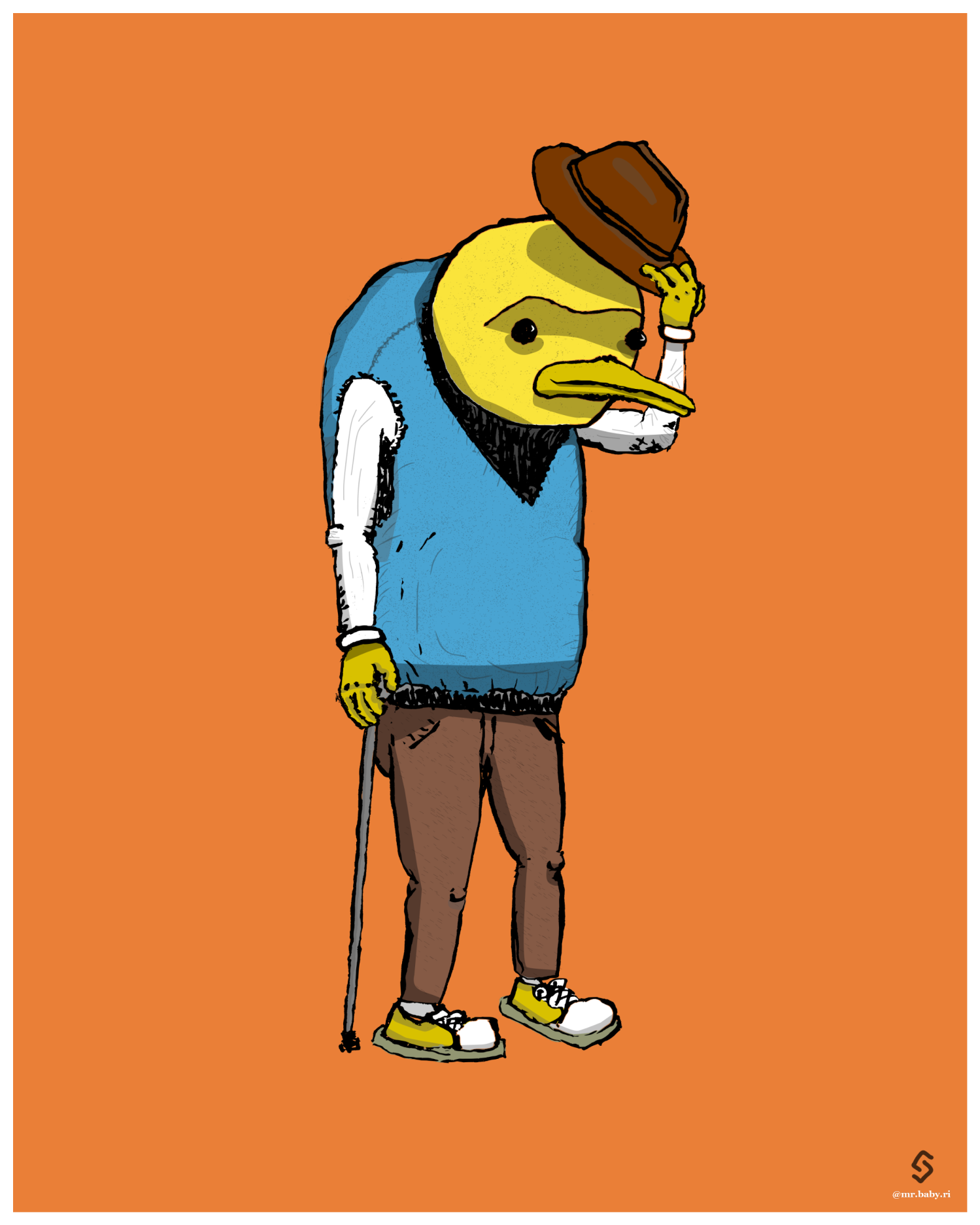 Mr. Birb is a dapper bird-like gentleman.